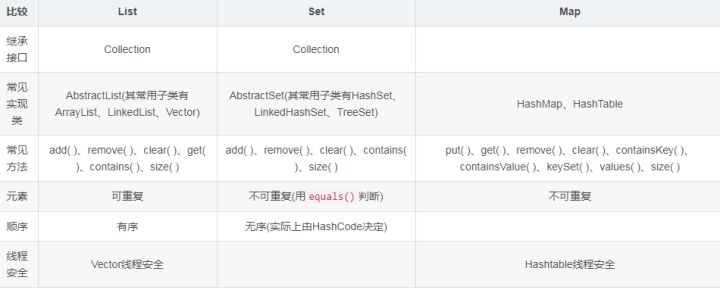 List、Set、Map 的区别主要体现在两个方面:元素是否有序、是否允许元素重复。